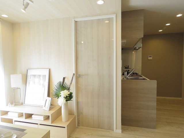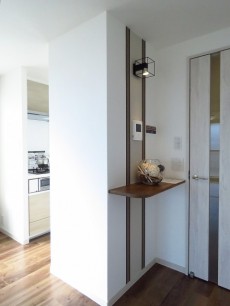 LDKの扉横はTEL台。固定電話を使わない方はインテリアのディスプレイスペースにしたり、鍵の置き場所にしたりと色々便利に使えそうです。