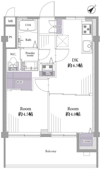 間取りのご紹介です。2DK、専有面積は40.50㎡。