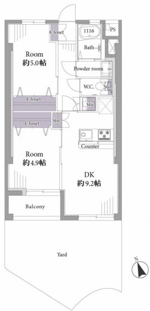 間取りのご紹介です。2DK、専有面積は50.22㎡。