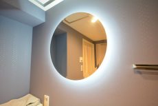 洗面台の鏡は皆既日食の様で、幻想的です。