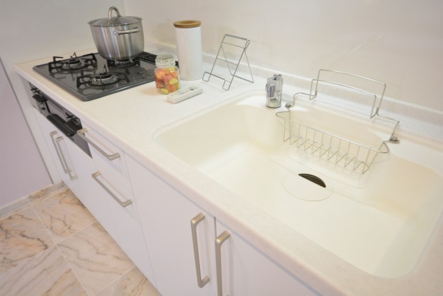 水きりカゴがあり、食器やまな板を清潔に保つことができます!