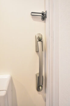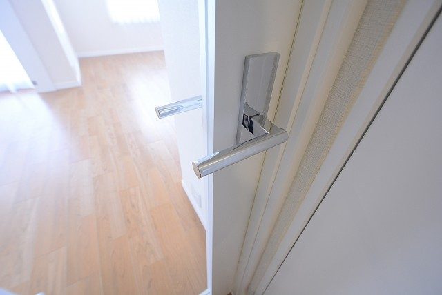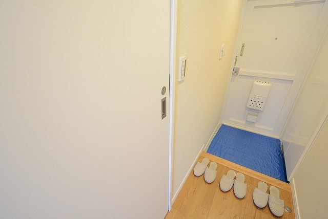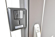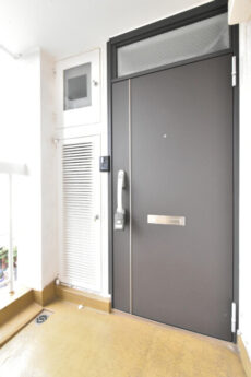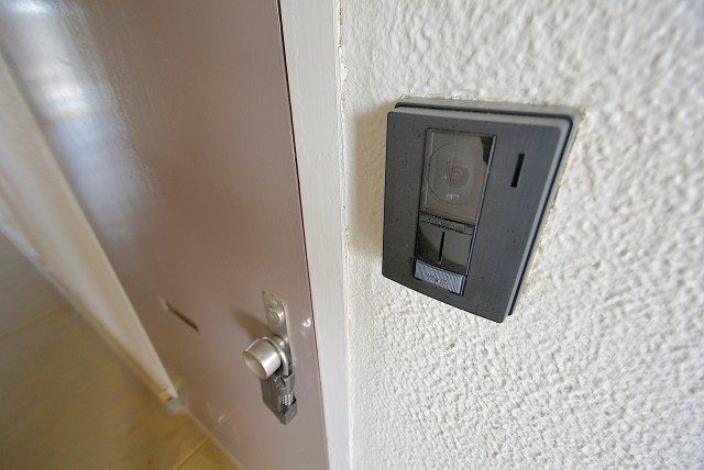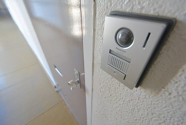 ドア横にはモニター付きインターホン。室内から玄関前の様子を確認できるので、わざわざ玄関まで来る必要がありません。