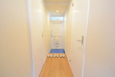キッチンの奥は洗面室。洗濯機置場、洗面化粧台、バスルームがまとまってます。お料理しながらお洗濯、お風呂掃除など家事もまとめてこなしやすい位置関係です。