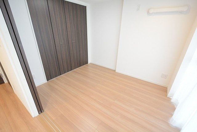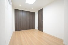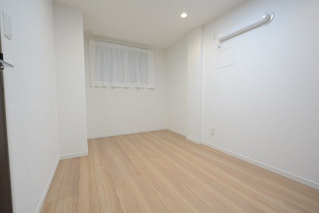 こちらは約4.0帖の洋室。南向きバルコニーに面した大きな窓が付いた明るいお部屋です。多少コンパクトですが入口に引き戸を使っているので、扉の開け閉めに必要な無駄なデッドスペースもできません。