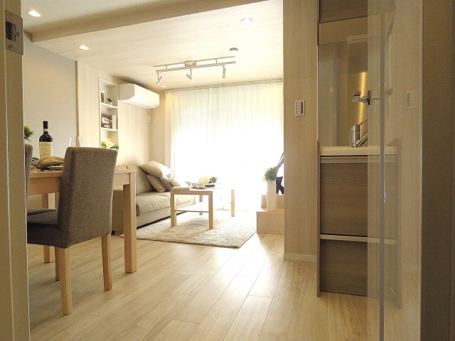 ■その他・・・フローリング貼替、建具・玄関収納交換、壁・天井クロス貼替、フロアタイル貼替、給湯器交換、エアコン(1基)、カラーTVモニター付きインターフォン、新規照明器具取付、収納棚新設、スイッチ・コンセント交換、ハウスクリーニング