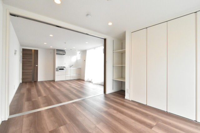 引き戸をあけてLDKと洋室をつなげれば広々とした一つの空間としてもご利用いただけます。つなげて使ったり、独立させて使ったり、お好みにあわせてご利用ください。