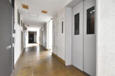 エレベーターは1基。共用廊下はゆとりのある外廊下タイプです。