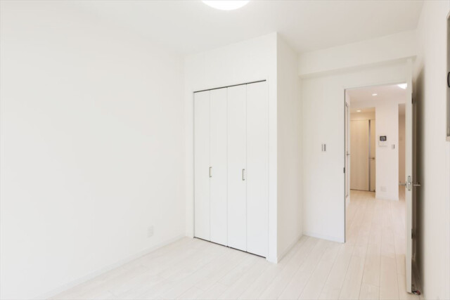 LDKに面したクローゼット付きのお部屋です。今までご紹介したお部屋と同じくシンプルな色使いなので、カーテンや家具も合わせやすくなっていますよ。