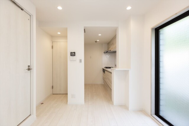 洋室お隣になるダイニング・キッチン 7.7帖です。こちらにも小さな窓に出窓、バルコニーと沢山の光が入り、真っ白なダイニング・キッチンの白さがより引き立ちます!
