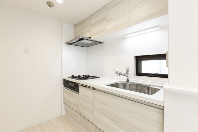 清潔感たっぷりのシステムキッチンです。食洗器付です。家事の時間も減り家族との時間が増えますね!見た目もスッキリ、急なお客様がきてもササッと中へいれてピッと押せば洗物完了ですね。シンクもも広々快適にお料理が進みそう♪
