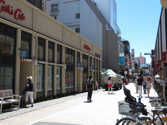 自由が丘駅からだと南口を出て行くのが近いかと思います。スーパーが入ったフレル・ウィズ自由が丘の横を通るので帰り道のお買い物も便利。にぎやかな街並みを抜けたら緑道沿いを歩いていきます。