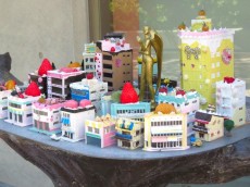 スイーツフォレストの前には自由が丘をお菓子の街に見立てた模型が置いてありました。ビルの上にいちごのってます!メルヘン。