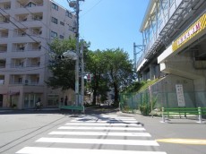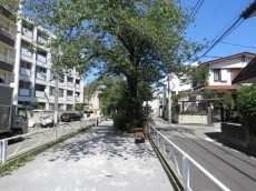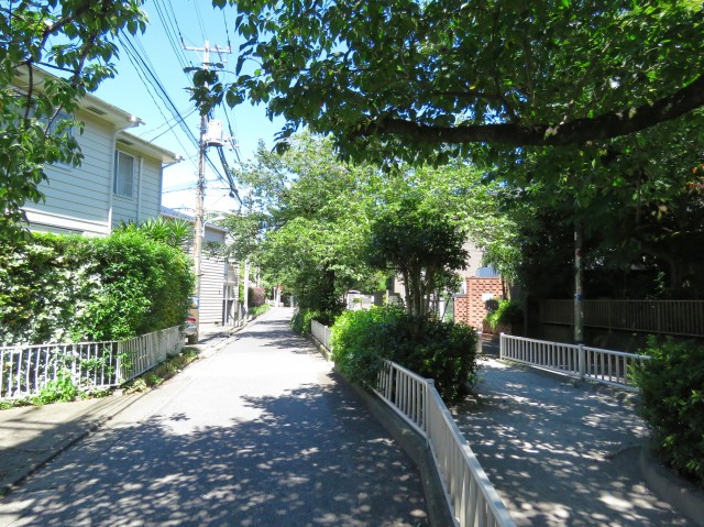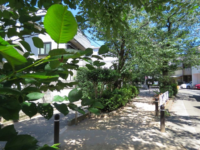 周囲はすっかり静かな住宅街。緑道沿いの木は桜なので春は桜並木のお散歩も楽しめます。ちなみにマンション前を通過してさらにまっすぐ歩いていくと・・・