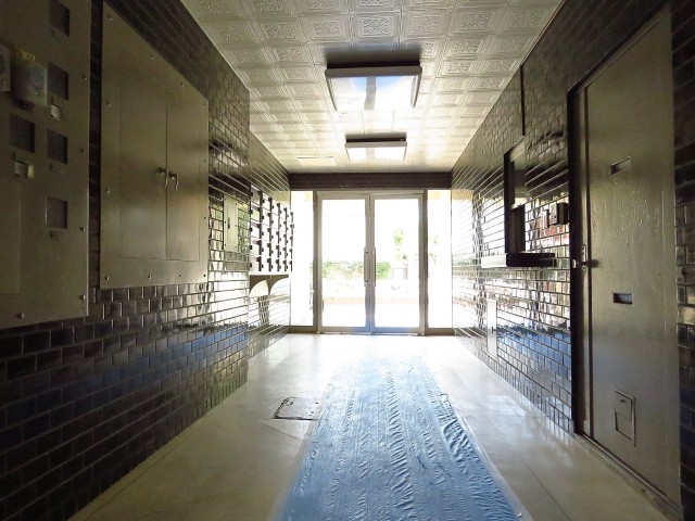 エントランス内部。壁は外観と同じ色合いのタイル貼りになっています。