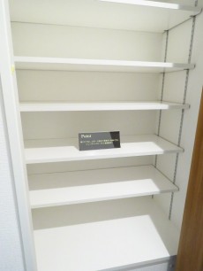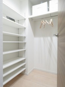 靴から日用品のストック、衣替えの衣類など色々まとめて仕舞っておける広さです。棚は可動棚なので入れる物に合せて高さが変えられます。