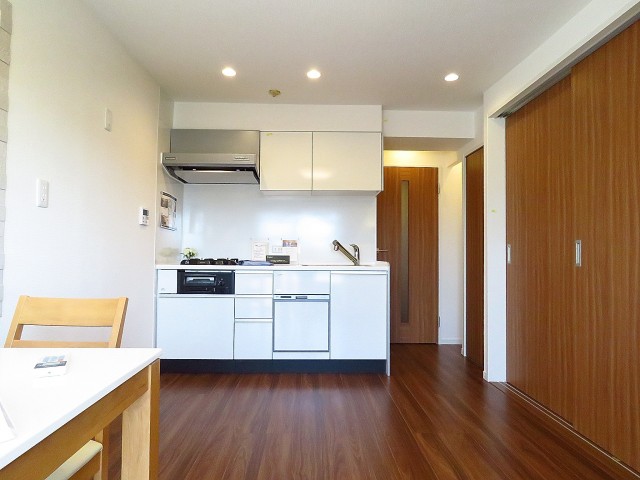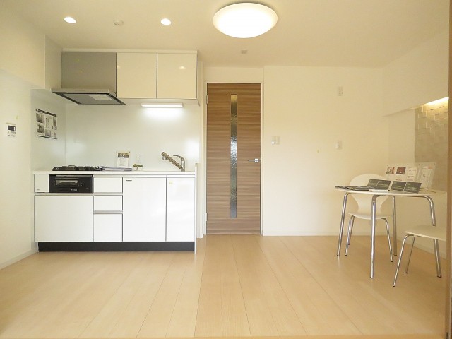 窓側からもご覧ください。キッチンは壁面と同じく白です。