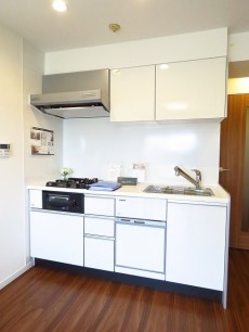 キッチンはコンロが2口、水栓は浄水機能付き。後片付けが楽な食洗機もついています。後片付けの時間が短縮できれば時間にも気持ちにも余裕がでるかも・・・。