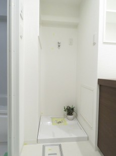 洗濯機置場はバスルーム横。脱いだ衣類はすぐ洗濯機へ♪