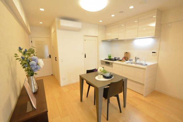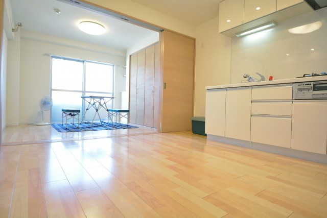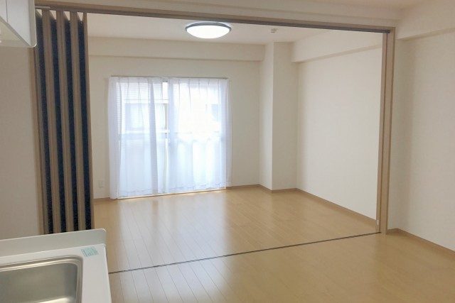 扉を開放し、ダイニングキッチンと洋室をつなげて一体感のあるひとつの空間としてもご利用いただけます。ダイニングキッチン内もグンと明るくなりました。