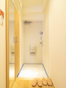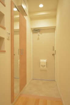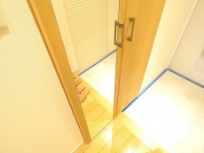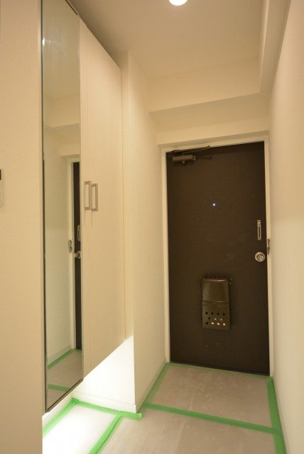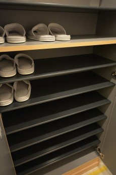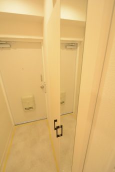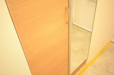 中へ入ると右手に扉の半分がカガミになったシューズBOXがつくられています。