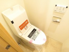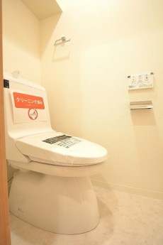 トイレはTOTO製温水洗浄機能付き。吊戸棚も設置されトイレットペーパーのストックもこちらに収納可能です。毎日のトイレライフも快適ですね!