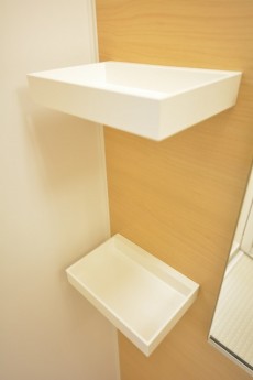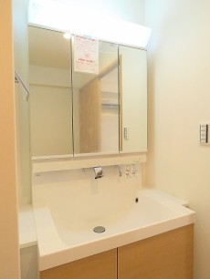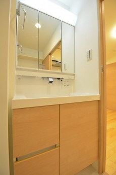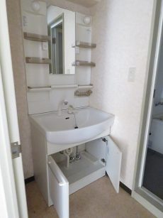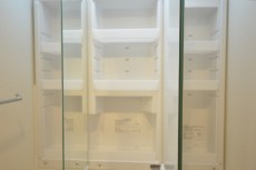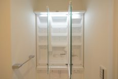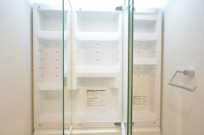洗面化粧台は鏡の裏が一面収納になっており、ハブラシやコスメ類などゴチャゴチャしがちなアイテムもスッキリお仕舞いただけます。