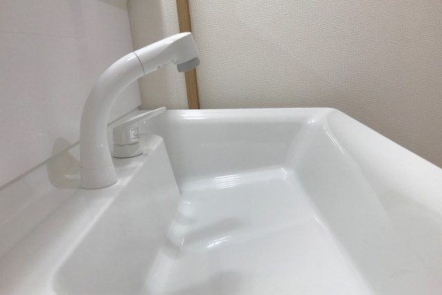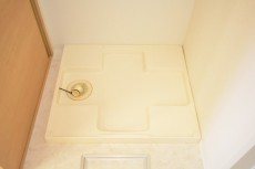 片付けられます。洗面化粧台の真後ろは洗濯機置場。