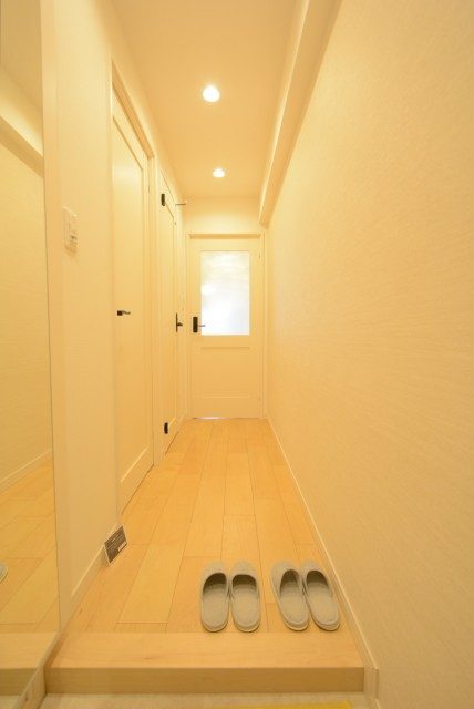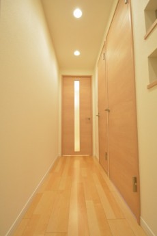 玄関を上がると目の前に廊下がまっすぐ伸びています。