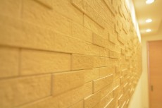 壁面のエコカラットは見た目も◎ですが調湿機能や消臭機能もあるスグレモノです。