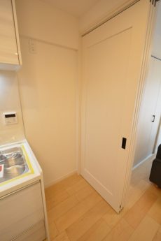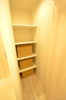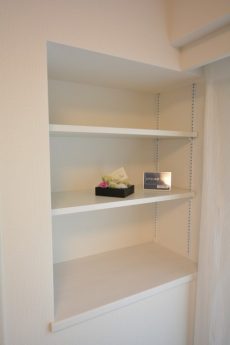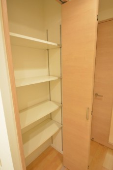 ダイニングキッチン内には棚付きの物入れが設置されています。
