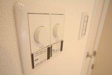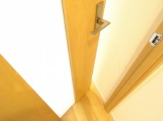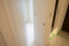 玄関ドア横にはテレビモニター付きインターホンが設置されていて、お部屋の中から訪問者を確認する事が出来ます。「ハイ」と返事をする前に映像でチェックをすれば、しつこいセールスなどにつかまる事も無くなりますね。