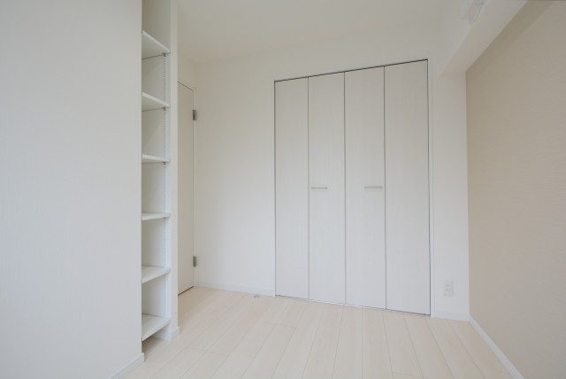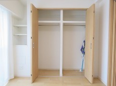 室内にはワイドクローゼットと本やインテリアを置くのによさそうな棚付の収納スペースがつくられています。