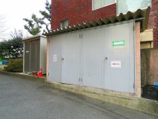 マンションの敷地内には駐車場、駐輪場、専用のゴミ置場がありました。