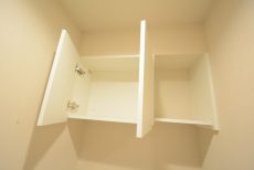 上の棚にはトイレットペーパーのストックをどうぞ。