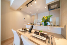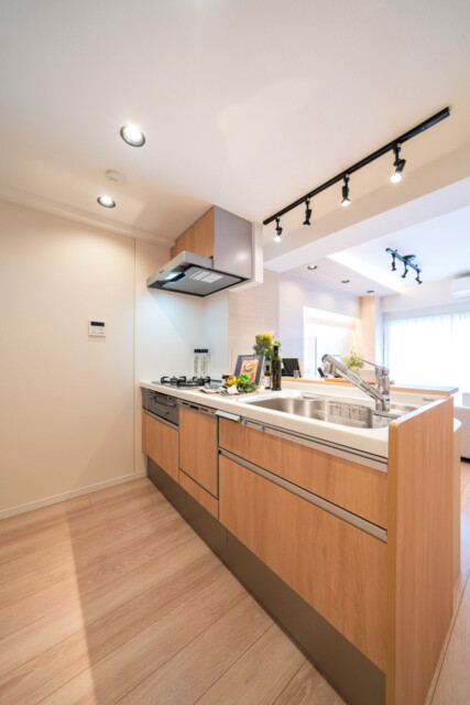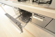 コミュニケーションが取りやすくリビングダイニングとの一体感が特徴のキッチンです。更にキッチン内が見えづらいのもメリットのひとつ。人目を気にせず思う存分腕を振るえますね。洗い物を食器洗浄乾燥機にお任せすれば食後をのんびり過ごせますよ♬
