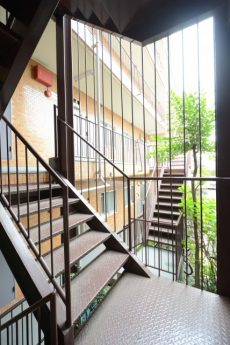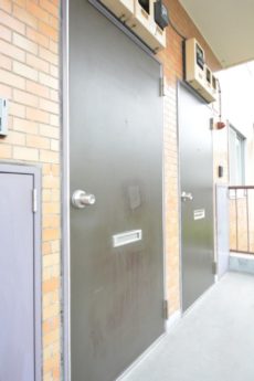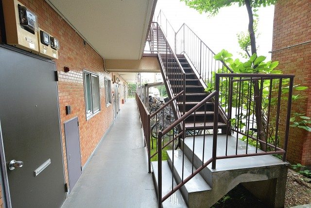 エレベーターで2階まで上がり外廊下を進みます。2階程度なら階段で上がるのもいい運動になって良いかもしれませんね。たまにはですが^^;)