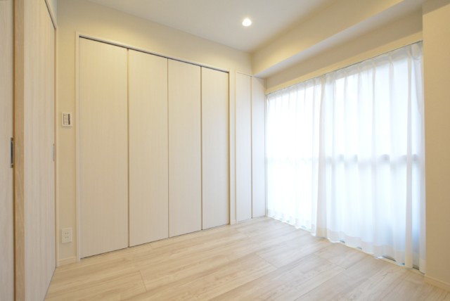 バルコニーはありませんが南東向きの大きな窓の付いたお部屋です。シンプルな内装なので家具も合わせやすそうですね。収納はウォークインクローゼット!!!衣類だけでなくスーツケースなどのかさばる物も入れておけそうです。