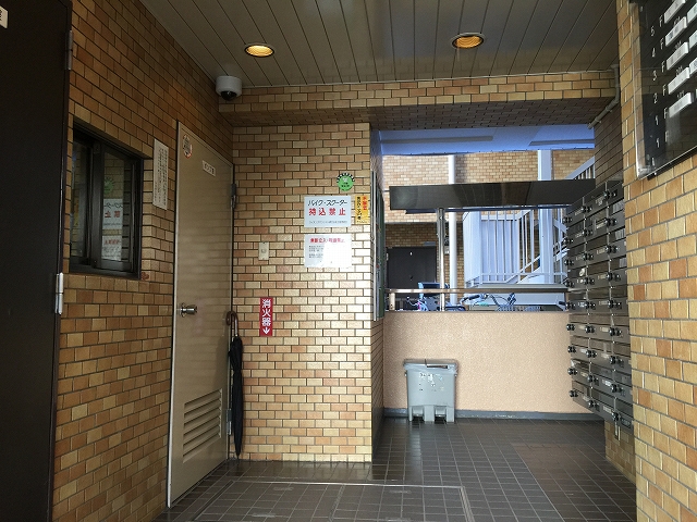 エントランスホールは小さめですが、きれいに管理されている印象を受けました。左手に管理人室。管理人さんは巡回です。