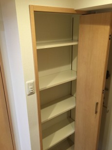 反対右側には収納があります。こちらも可動式の棚♫シューケア用品や傘、入りきらなかった靴なんかはこちらに収納できそうです。