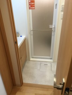 右手の洗濯機置場☆棚等は設置されていませんので、後から棚を設置したり、突っ張り棒で収納を作ったりと工夫したいですね(*´∀`*)