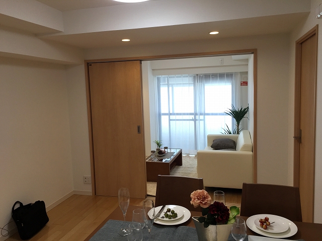 ダイニングキッチンとは、スライド式ドアで隔てられているので、ライフスタイルに合わせて開けて使うこともできますね(*´▽`)開けて使えば一つのお部屋の様に使えます。ダイニングキッチンに窓が無いので、開けて光の差し込むリビングダイニングとしてと使っても良いですね(o´∀`ノ