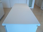 調理台はフローリングに合わせたパネルを使用。一体感があって広く感じます。