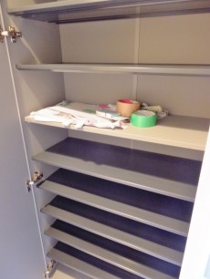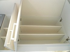 両開きのトールサイズの玄関収納をあけますと可動棚になっています。