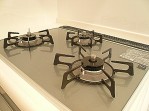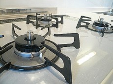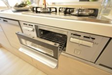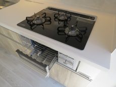 コンロは3口、グリルも付いています。グリルって魚イメージ強いですが、肉でも野菜でも何にでも使える便利な調理器具なんですよ。レシピもたくさんありますので、ご興味がある方は是非調べてみて下さい。