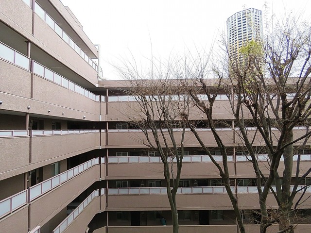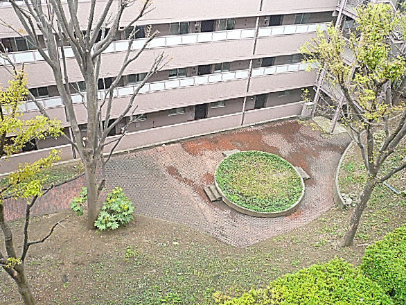 6階眺望です。遮るものなく抜ける景色と空、下を覗くと緑と開放的な中庭、どちらをみても穏やかな気持にさせてくれる嬉しい景色です。