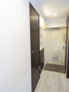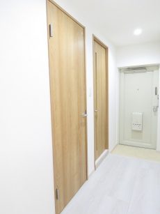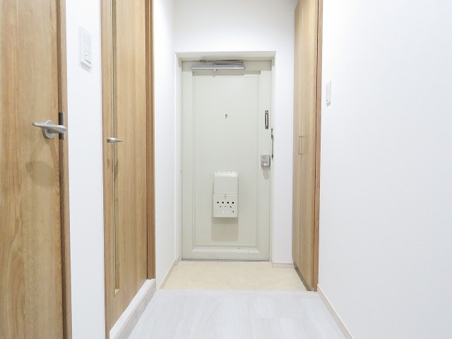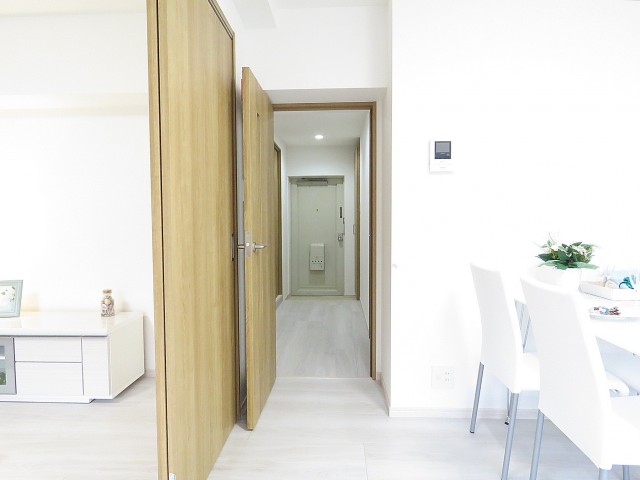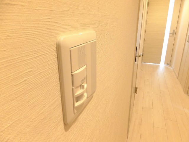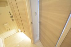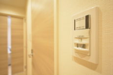 玄関ドア横にはモニター付きインターホンが設置されて、お部屋の中から映像で訪問者を確認する事が出来ます。映像で確認してから応対するかを決められるのはいいですよね。