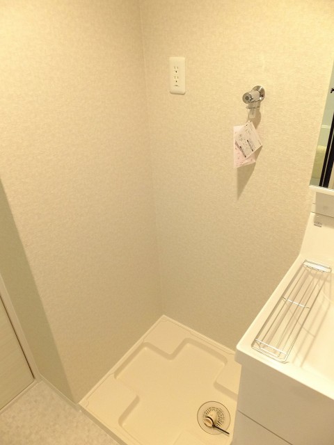 洗濯機置き場です。左側に少しスペースがあります。こちらを利用して洗剤などが置けると良いですね!