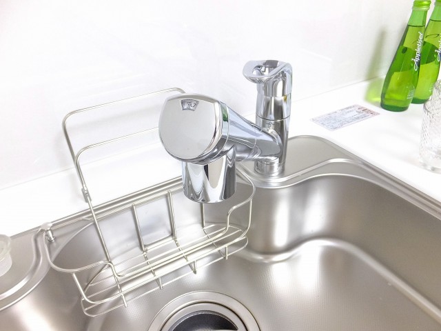 水栓は浄水機能付きシャワー水栓。切り替えひとつで気軽に美味しいお水を使えます。ヘッドが伸びるので、シンクや大きなお鍋などを洗うのも楽々(^^♪