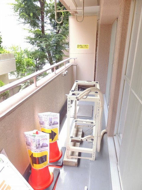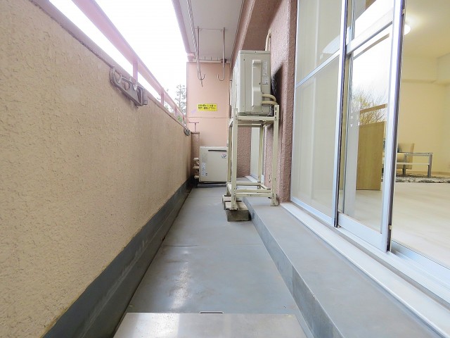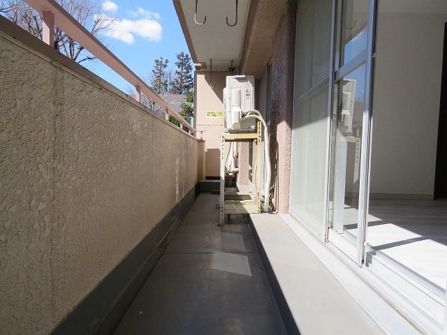 広さ8.28㎡、北東向き。きれいにデッキパネルの敷かれた幅の広いバルコニーです。手すりに物干し金具も設置されていて、お洗濯物も干せるようになっていますよ。(竿はご用意ください)方角的に午前中がお勧めです。