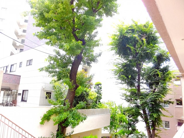 5階ですが外は2階からの眺めになっています。坂の多いこの辺りではよく見かけますが、反対側から見ると5階だったりするんですよね。大きな道路からは少し中に入っているのでとても静かですよ。